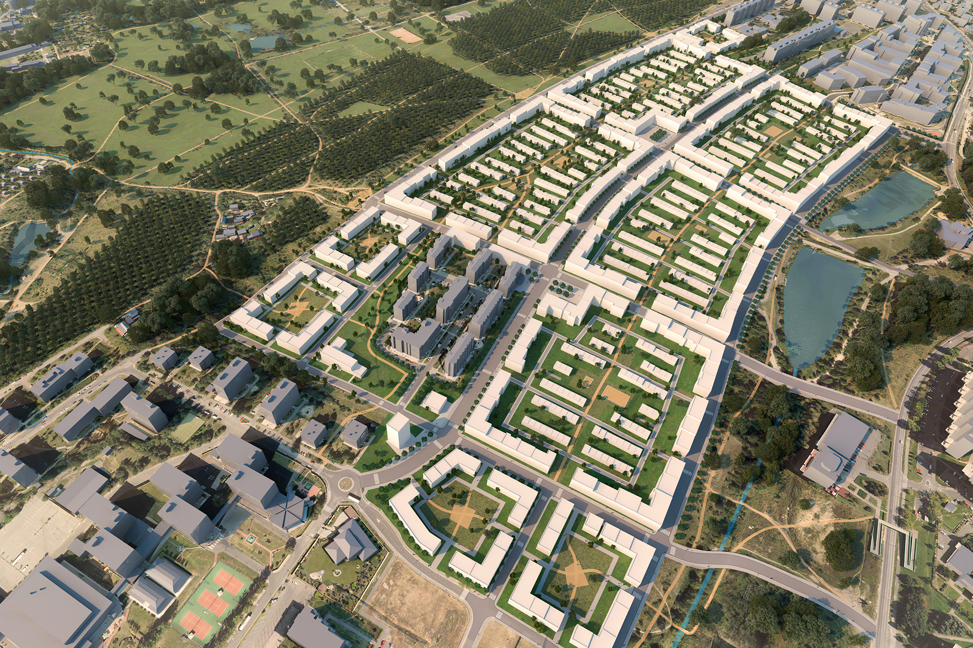 Urbanistická studie území "Trojmezí"; diplomová práce na FA ČVUT v ateliéru prof. Ing. akad. arch. Jana Šépky.